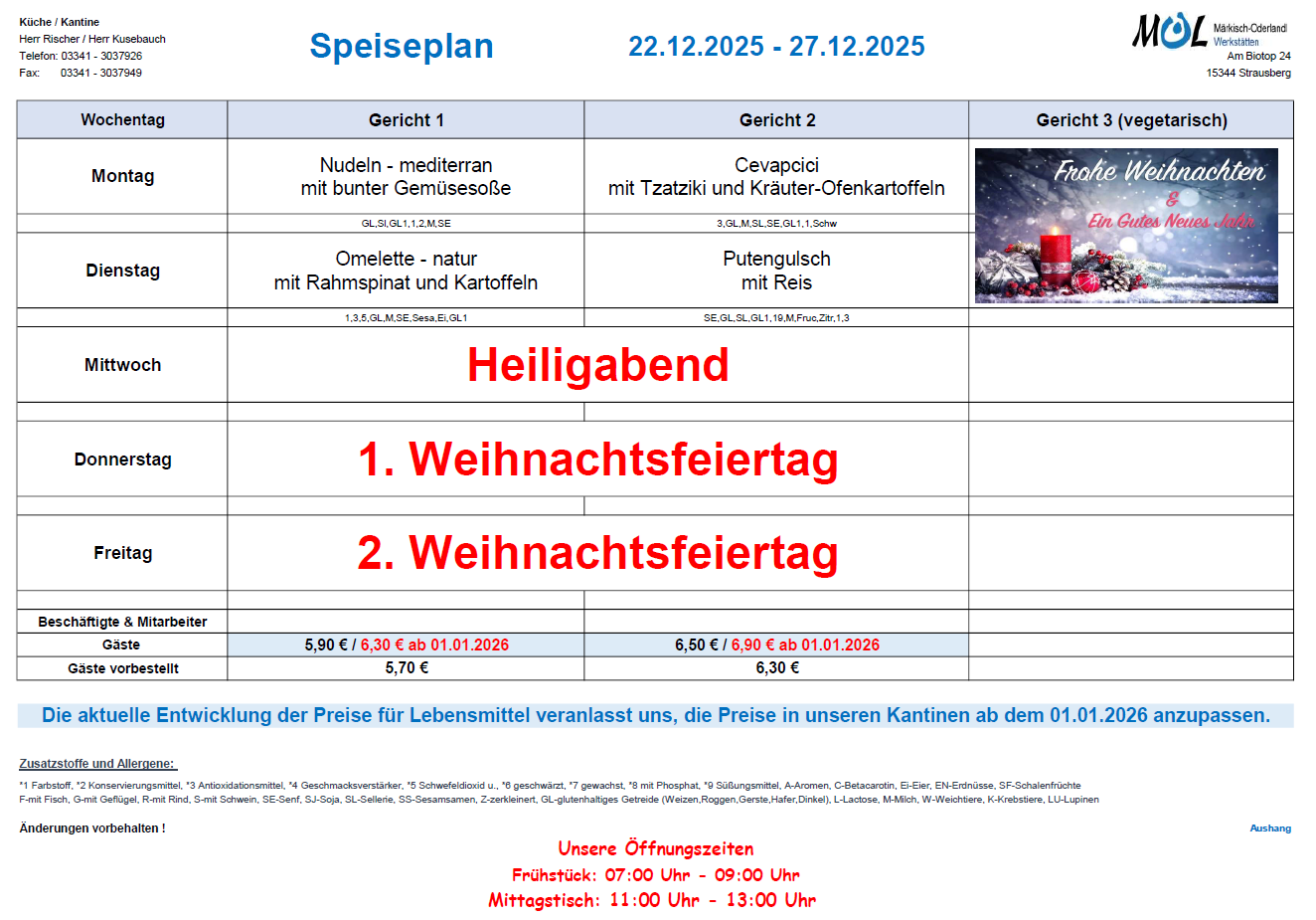 Dokument: Speiseplan 52. KW 2025 Kantine Strausberg