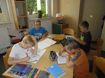 Nach dem Unterricht kommen unsere Hortkinder aus der gegenüberliegenden Grundschule. Bei uns essen sie Mittag, erledigen ihre Hausaufgaben und haben die Möglichkeit in den Bildungsbereichen