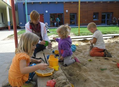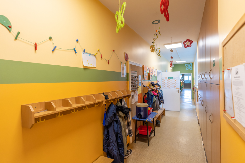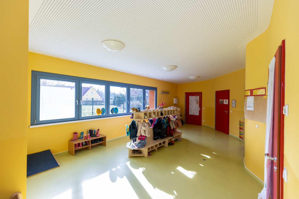 Der neue Krippenanbau bietet Platz für 22 Krippenkinder. In den hellen freundlichen Räumen fühlen sich die Kinder sehr wohl.