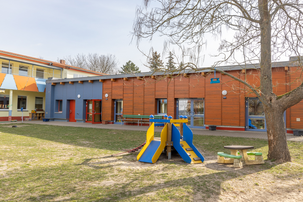 Unsere Kindertagesstätte ist eine teilstationäre Integrationseinrichtung. Das heißt, gemeinsam mit den Kindern des Regelbereiches spielen und lernen behinderte oder von Behinderung bedrohte Kinder und werden ganztägig unterstützt und gefördert. Ihrem besonderen Bedarf an Zuwendung und Förderung wird hier im Rahmen der gewohnten Abläufe einer Kindergartengemeinschaft, jedoch mit angepassten räumlichen, sachlichen und personellen Bedingungen, Rechnung getragen.