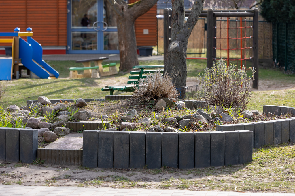 So wie in den Räumen der Kita gibt es auch auf dem Freigelände Gelegenheiten zum Forschen und Experimentieren.