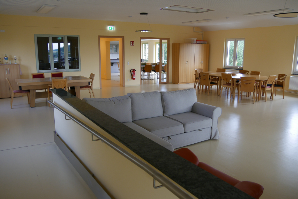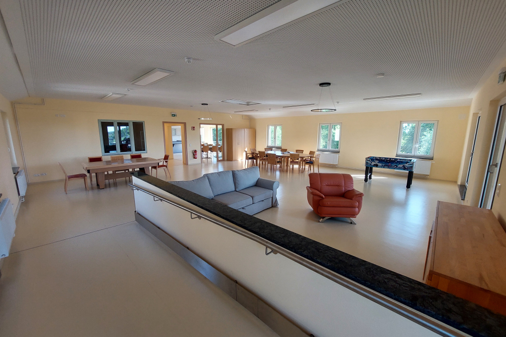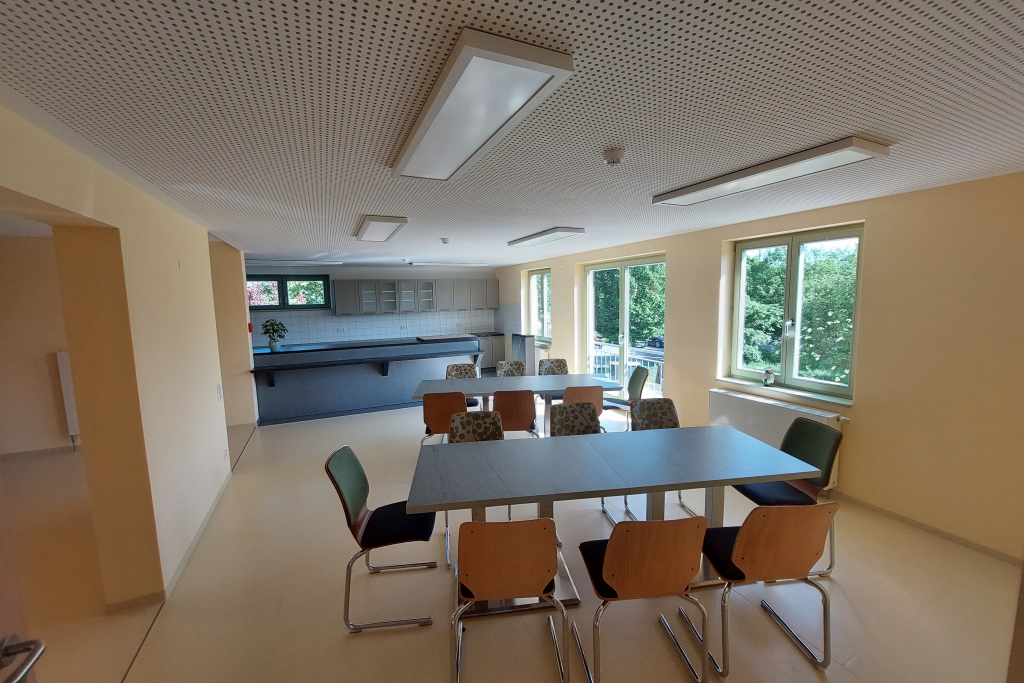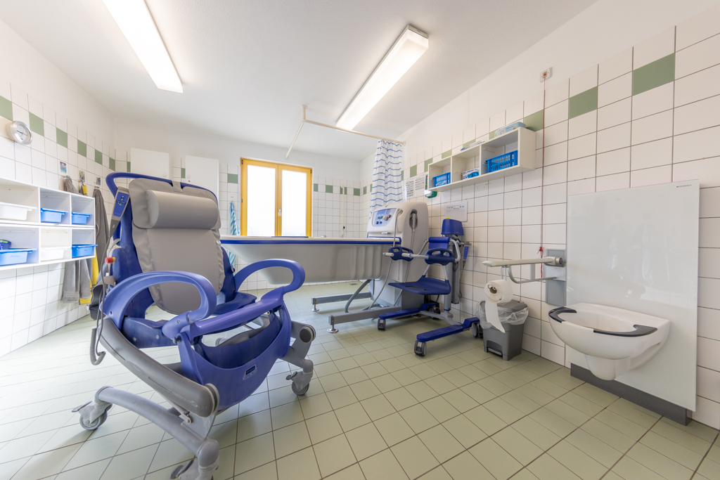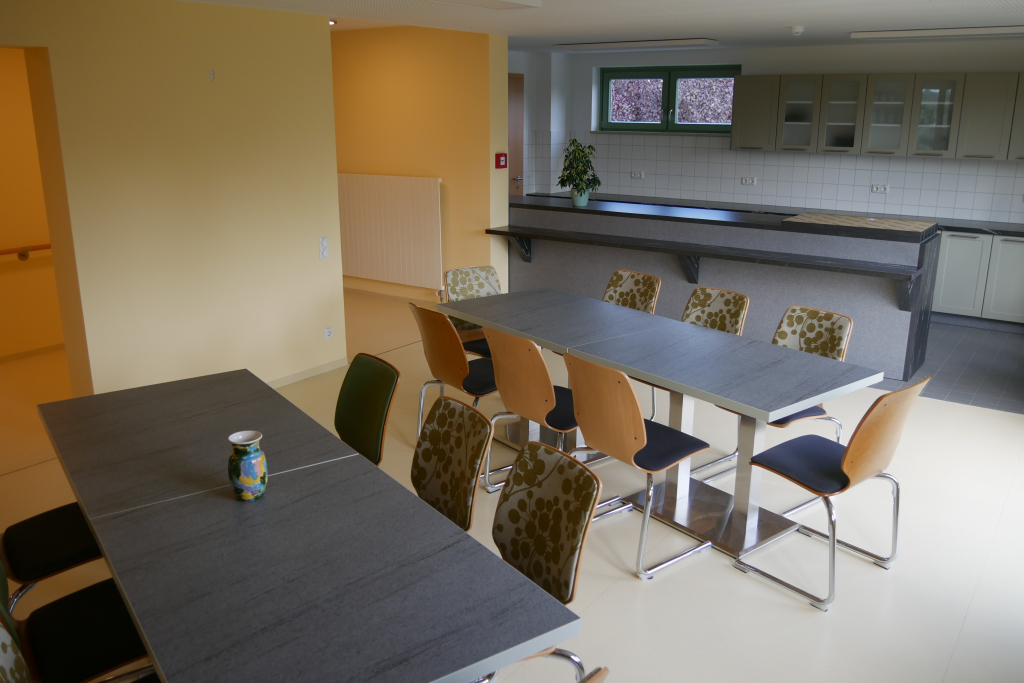 Die Wohnstätte ist zusätzlich mit einem Pflegewannenbad incl. Wannenlift und Dusch-WC, einem Treppenlift, einer Kreativwerkstatt und einer großzügigen Außenanlage mit Möglichkeiten für sportliche Betätigung, Grillplätzen, Feuerstelle und Sitzgruppen ausgestattet.
