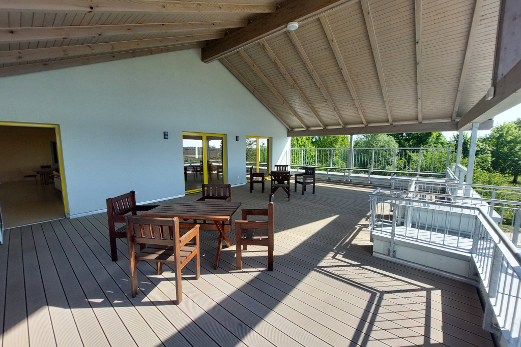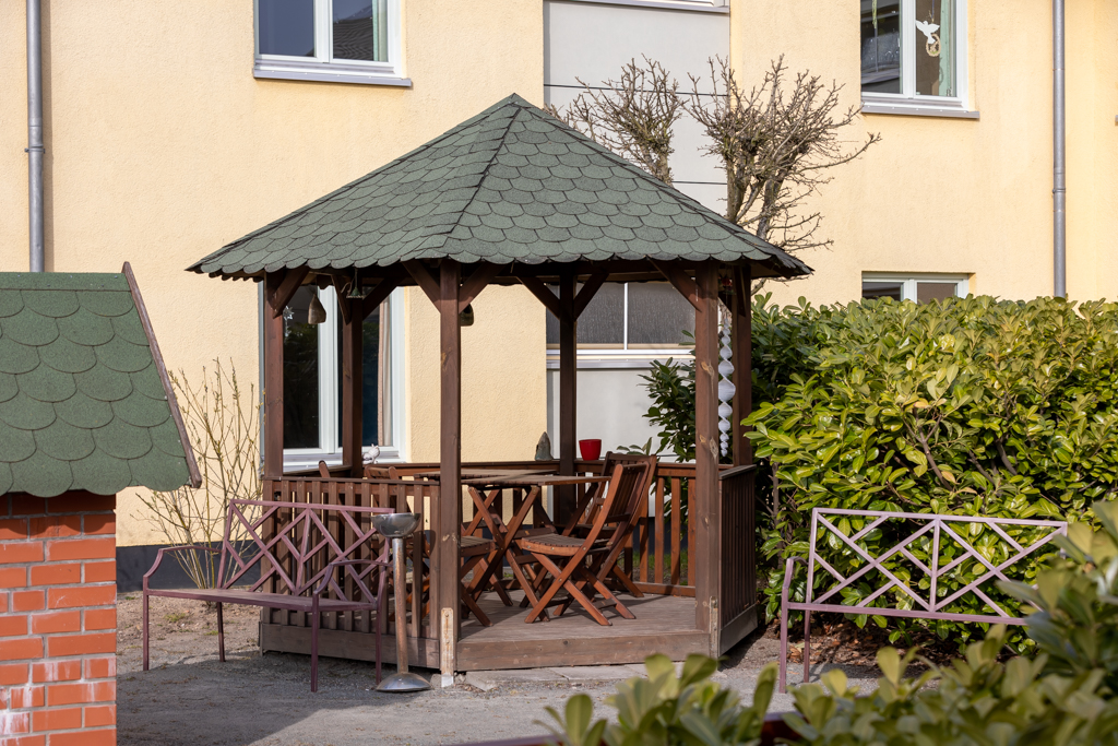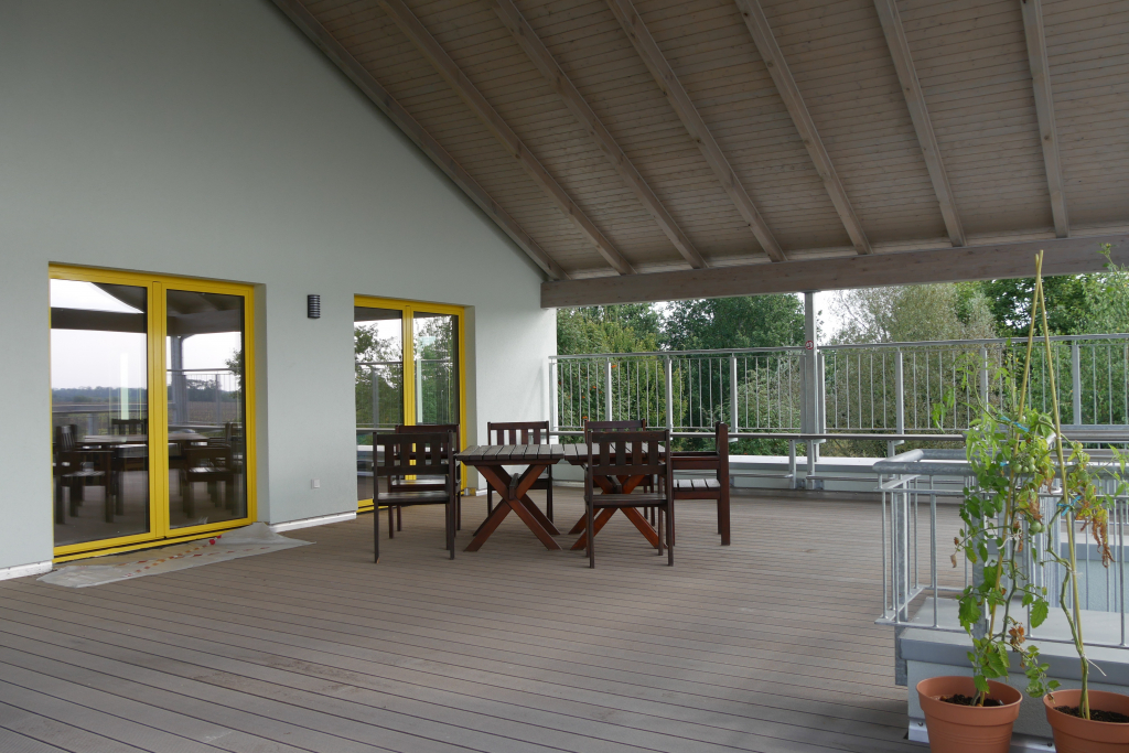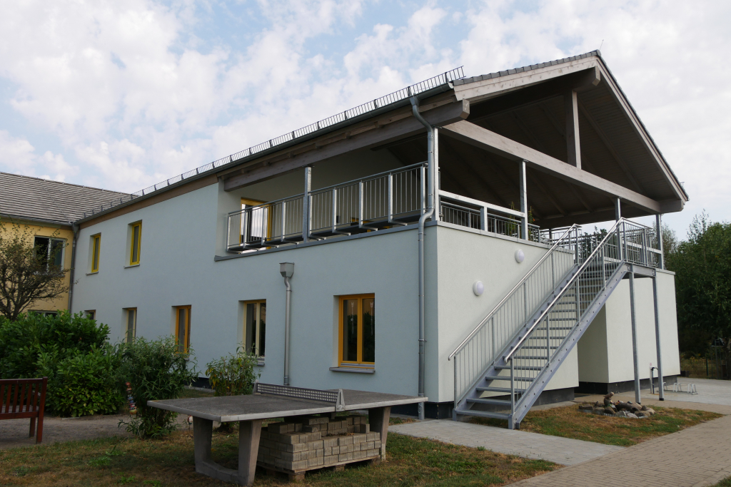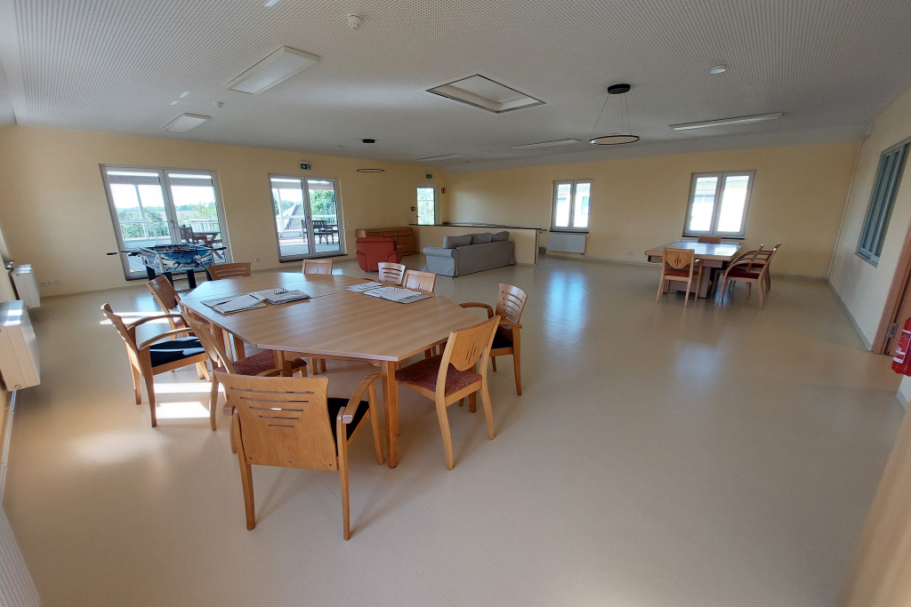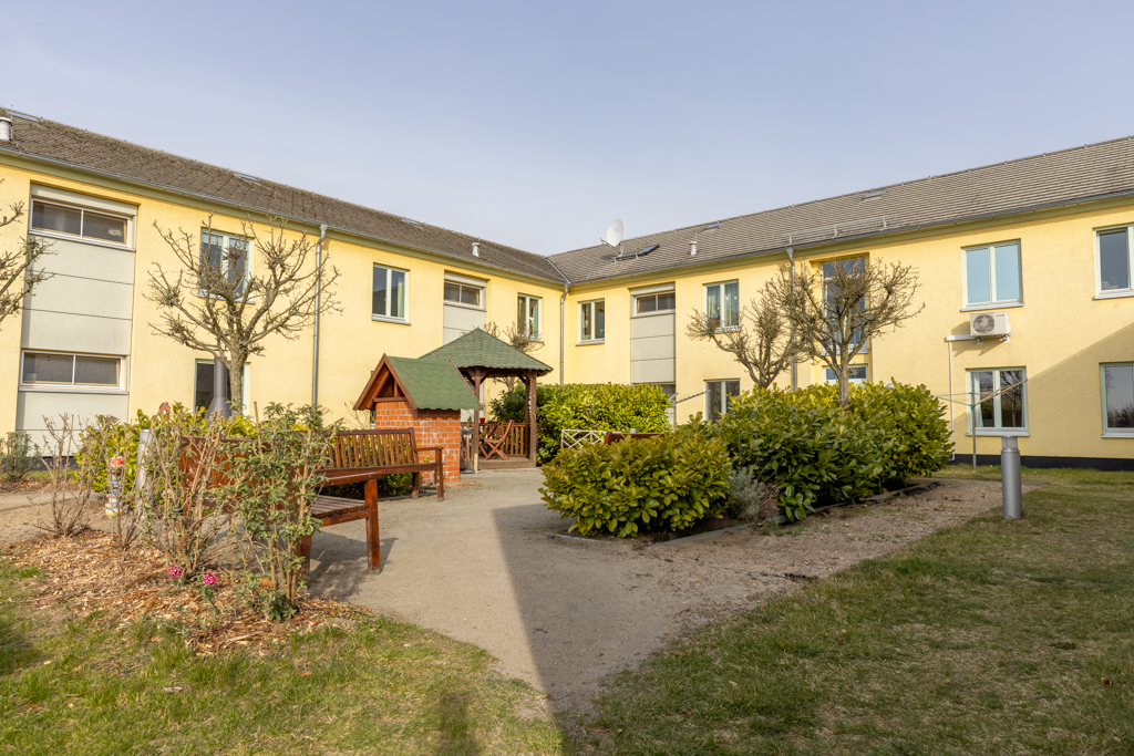Die Wohnstätte ist zusätzlich mit einem Pflegewannenbad incl. Wannenlift und Dusch-WC, einem Treppenlift, einer Kreativwerkstatt und einer großzügigen Außenanlage mit Möglichkeiten für sportliche Betätigung, Grillplätzen, Feuerstelle und Sitzgruppen ausgestattet.