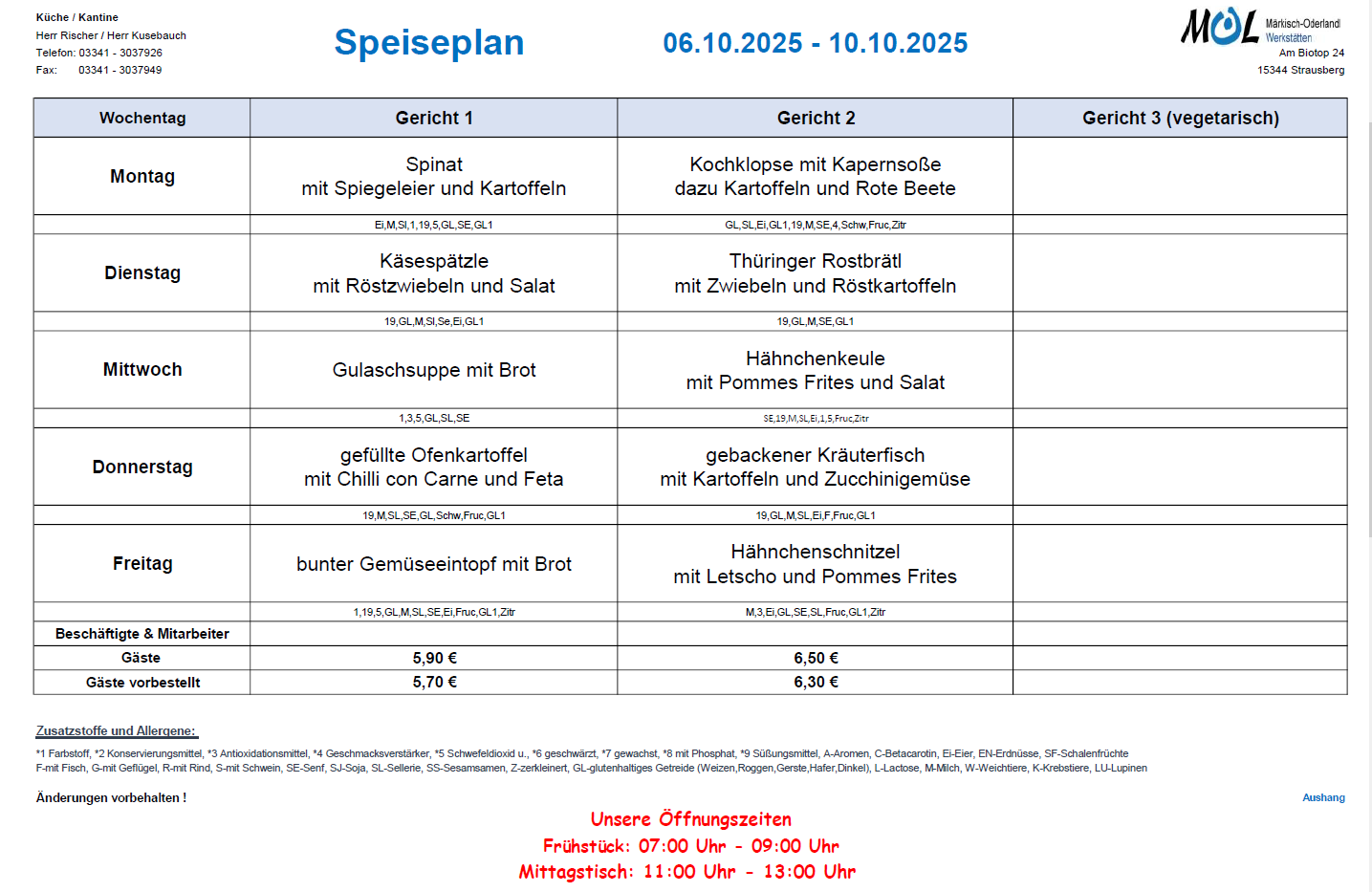 Dokument: Speiseplan 41. KW 2025 Kantine Strausberg