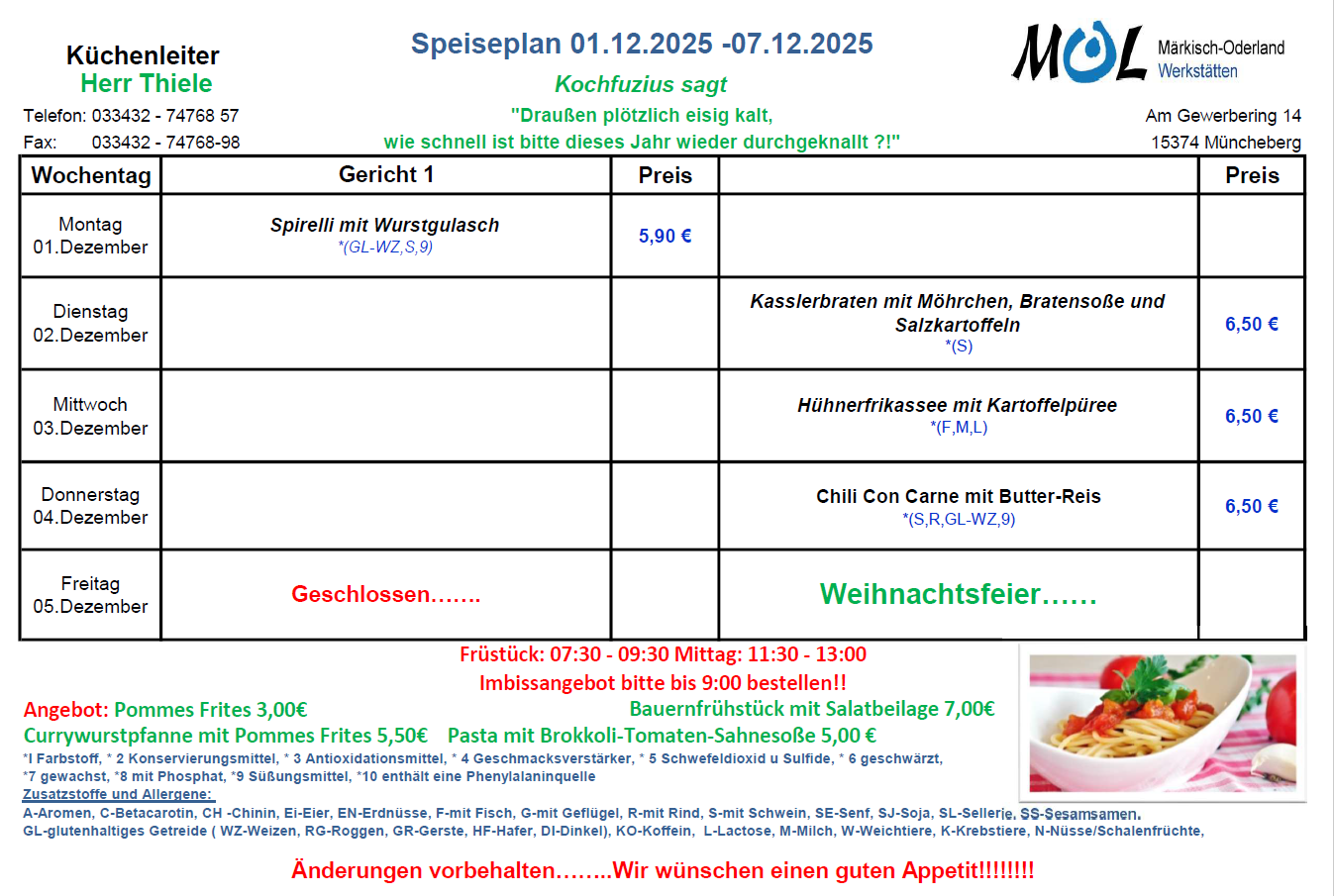 Speiseplan 49. KW 2025 Kantine Müncheberg